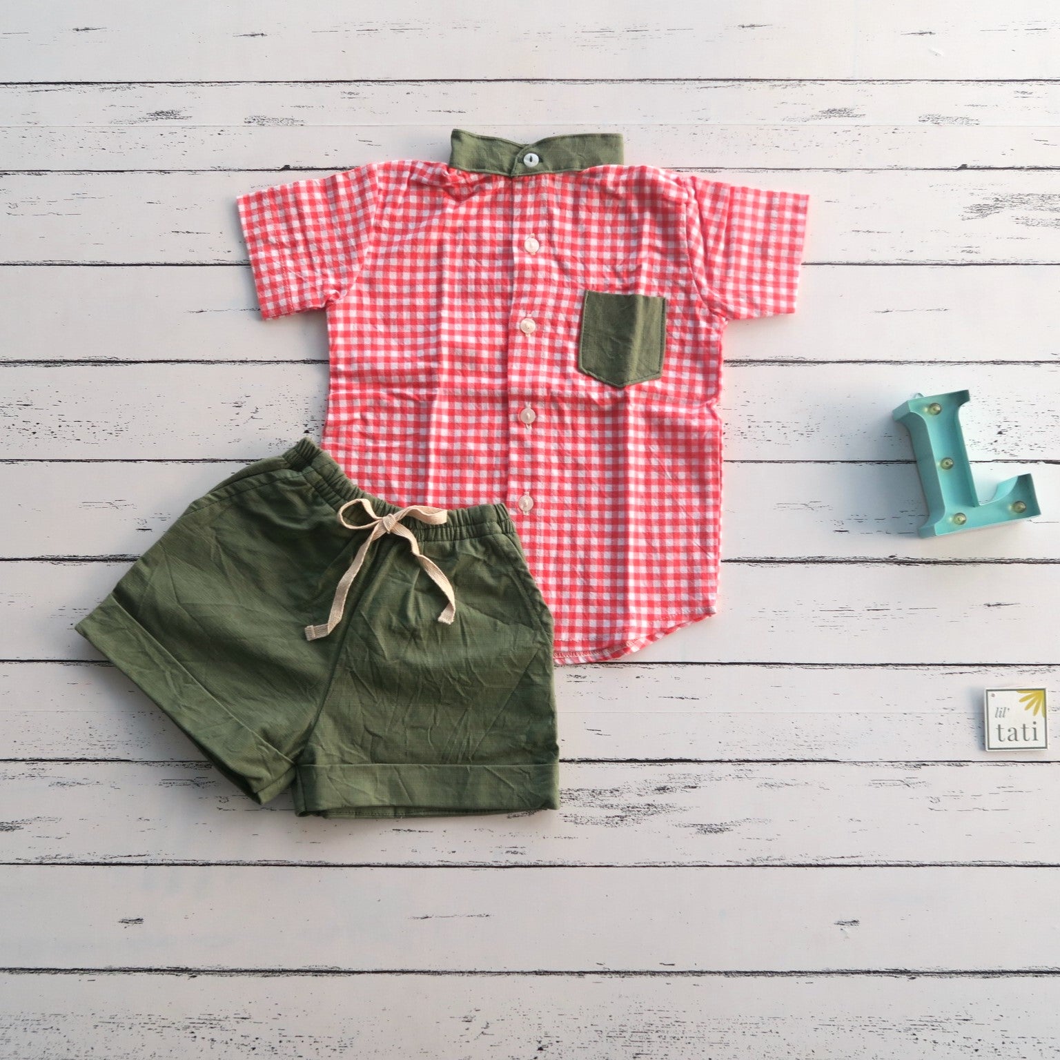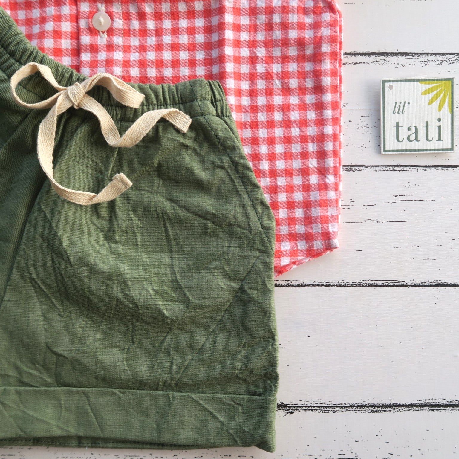Cedar Top & Shorts in Red Picnic and Green Linen